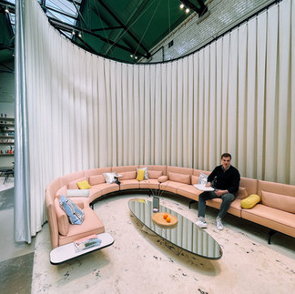 La paleta de colores tiene un enfoque retro, combinando colores como rosa, verde, amarillo, siempre guardando el toque hogareño sin dejar de incorporar la tecnología como estaciones de carga para dispositivos. En cada sala se siente el flujo de esta tecnología más armoniosamente debido a la sutileza de su colocación. Vitra fomenta espacios colaborativos donde prevalezca la interacción entre los individuos y su entorno de trabajo.